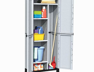 Δίφυλλη πλαστική ντουλάπα με 4 οριζόντια ράφια και 1 κατακόρυφο χώρισμα που ορίζουν έως και...