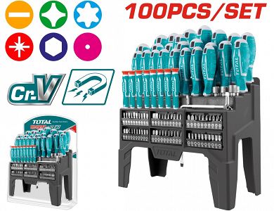 Σετ Κατσαβίδια 100τμχ. σε Εκθετήριο Πάγκου της TOTAL, THT2506100. Μεγάλης αντοχής, κατασκευασμένα α...